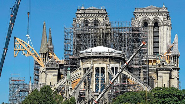 The reconstruction of Notre-Dame de Paris cathedral after its catastrophic fire on April 15, 2019, has sparked debate in France about philanthropic giving and inequality. (Photo by Bertrand Guay/AFP via Getty Images)