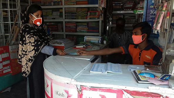 BRAC opted for a cash transfer program instead of relying on food package distribution because research demonstrates that cash is a more effective way of distributing aid when the market system is functional. But although we wanted to move fast with cash at the beginning, COVID-19 has presented a unique set of challenges and cash disbursement becomes increasingly inefficient, if not dangerous, in the midst of a pandemic. Designated paypoints can become difficult to access under the constraints of restricted mobility and curfew—especially for remote populations—while long queues and heavy congestion at paypoints raises the risk of infection. The inherent security risk of cash distribution for both staff and recipients may only intensify as financial hardship spreads.