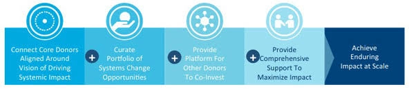 We believe that collaboration is critical to solving some of the world’s most daunting social challenges, and that this requires new and better mechanisms to efficiently match outstanding social change leaders and committed philanthropists with one another and their peers. Our goal is to build a platform and community in which committed philanthropists from around the world give and learn alongside one another in deep and meaningful ways while driving extraordinary results. And we hope to build a strong case for more philanthropists to collaborate and drive results at scale.