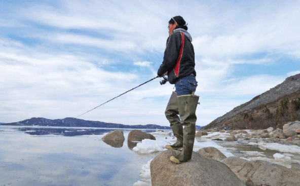A woman fishes in the Nunatsiavut community of Nain, in Newfoundland and Labrador. (Photography by Kristen McTavish)