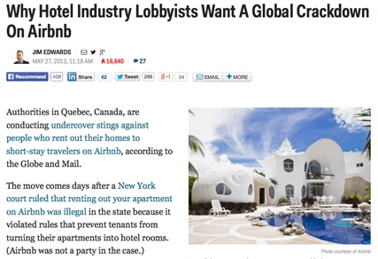 Your new competition may not abide by regulations (on use of buildings, for example), probably doesn’t pay tax on bookings, and gains competitive advantage by having virtually no overhead. And there’s the bind for policymakers. Crack down on this popular new economic activity? Or ignore outrage from regulated, tax-paying, job-creating businesses?