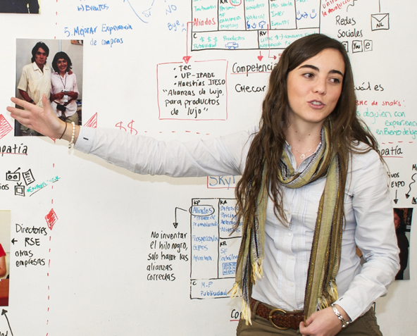 Skoll Scholar Macarena Hernandez do Obeso makes a presentation at Prospera, Mexico.