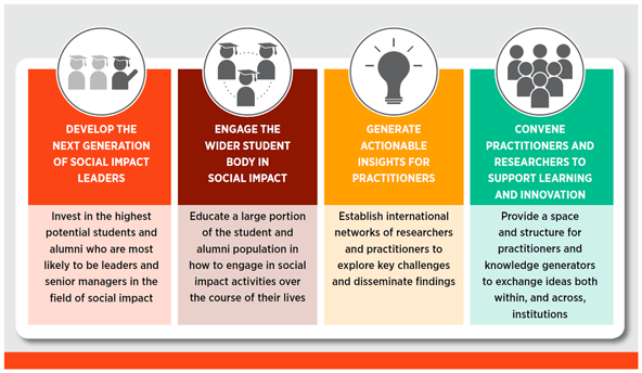 To be sure, there is a solid base to build on. Over the past decade, university-based social impact centers have successfully pursued four activities: developing the next generation of social impact leaders, engaging the wider student body in social impact, generating actionable insights for practitioners, and convening practitioners and researchers to support learning and innovation.