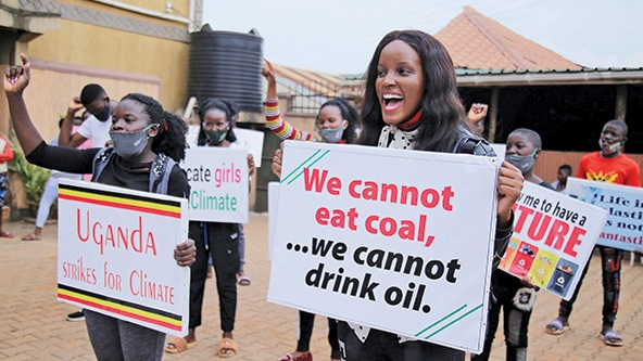 Vanessa Nakate and other climate change activists demonstrate in the Luzira suburb of Kampala, Uganda, on September 25, 2020. (Photo by Reuters/Alamy Stock Photo)