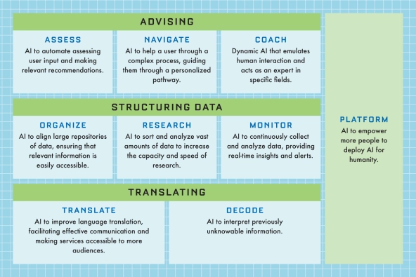 In the articles to come, we will dive deep into use cases across sectors: climate, health care, and education. This will give a look into the many ways AI is being used to serve humanity for the better.