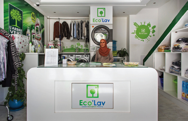 An employee stands ready to help patrons at EcoLav, a laundry enterprise that opened early this year in a suburb of Tunis. (Photo courtesy of The African Development Bank)