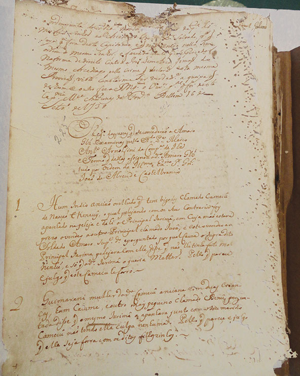 A document from 1739 details a slave raid in Amazonia. (Photo courtesy of Native Bound Unbound)