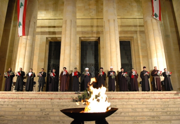 Unity in diversity: clergy of all of Lebanon's confessions join in a common prayer at the National Museum of Beirut. (Photo courtesy of Offre Joie Liban)