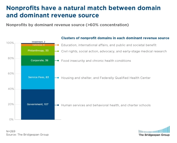 Organizations that do seek to get big have in common a belief that greater scale is critical to achieving the impact they seek and the good fortune to tap into major funding categories (like government, which is the dominant revenue category for 40 percent of the nonprofits in our data set).