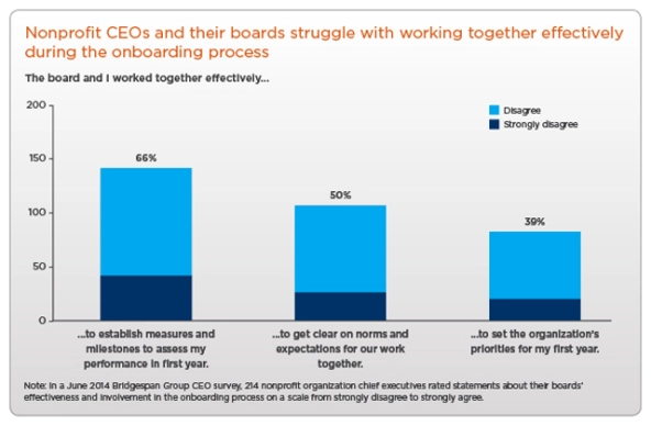 The number one responsibility of any board—for-profit or nonprofit—is management of the senior executive. Dozens of governance books drive this point home. Yet, when we talk with nonprofit leaders, it’s simply not their experience. Nearly half (46 percent) of the 214 CEOs responding to a recent Bridgespan Group survey reported getting little or no help from their boards when first taking on the position. As one executive director puts it, “The board essentially said, ‘We're glad you're here. Here are the keys. We're tired.’"