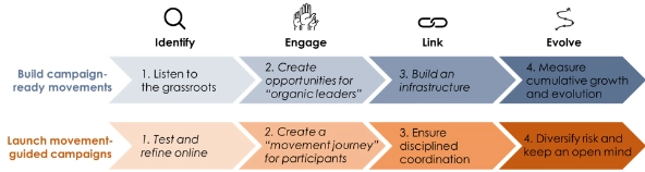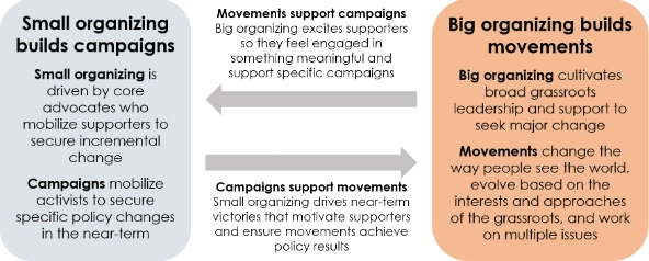 Campaigns and movements are distinct but mutually reinforcing. (Image by Blanusa, Chen, and Huttner, Grassroots Rising, 2018)