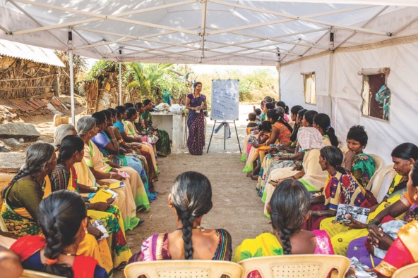 A Buzz Women India trainer conducts a session on financial resilience for women in a village in Karnataka. (Photo courtesy of Buzz Women India)