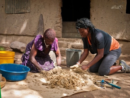 Liz Ogbu working with community members in Tanzania. (Photo courtesy of IDEO.org)