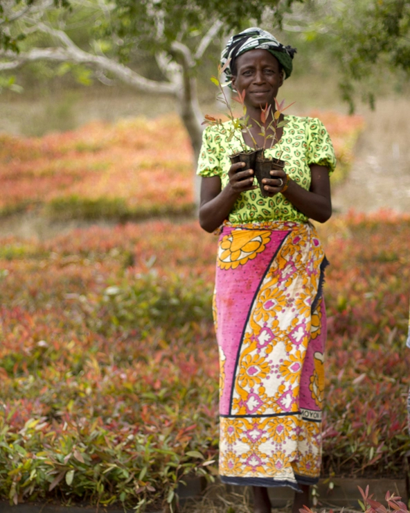 A Kenyan farmer holds seedlings at Komaza's nursery in Kilifi. (Photo courtesy of Komaza)