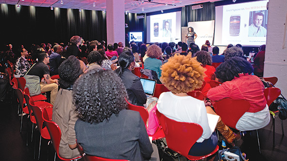 Kathryn Finney, founder of digitalundivided, addresses a packed FOCUS 100 audience in 2013. (Photo courtesy of digitalundivided)