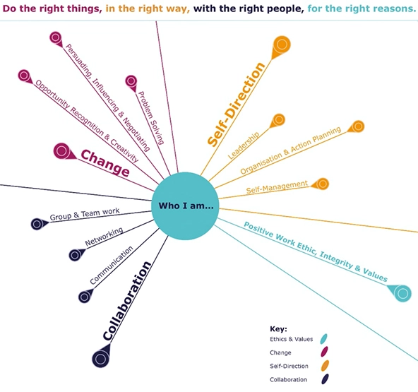 Despite the success of the Employability Award, meaningful engagement with the attributes within the curriculum only became possible by understanding how they align to the existing learning outcome stratification and subject-specific benchmarks issued by the UK’s academic quality assurance body, the Quality Assurance Agency (QAA). Faculty from across the University were engaged in the process of review, design, and appraisal through which the 14 attributes were grouped into four Graduate Employability statements that together formed Northampton's ChANGE framework (Changemaker Attributes at Northampton for Graduate Employability).