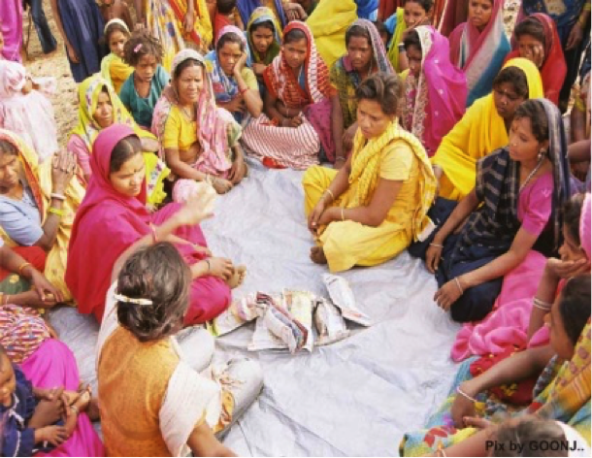 The social enterprise Goonj educates rural women on menstrual hygiene and distributes sanitary pads made from surplus clothes. (Photo courtesy of Goonj)