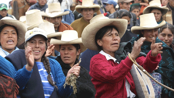 Peruvian women protest pollution from industrial mining. (Photo courtesy of Global Greengrants Fund)