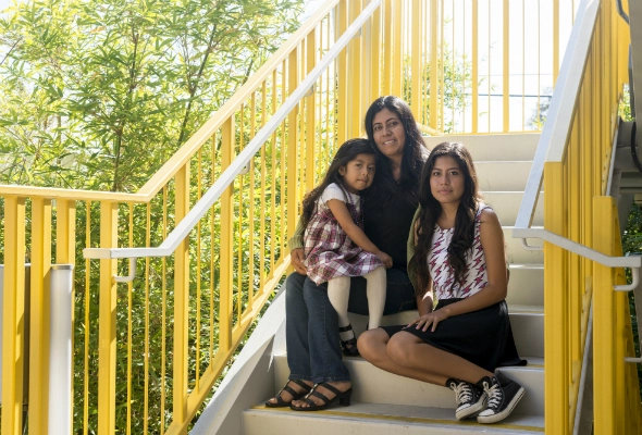 Residents of High Place West, an affordable housing community in Santa Monica, California, supported by Enterprise Community Partners and other partners. The apartments are available to low-income families earning up to 60 percent of the area’s median income. (Photo by Gabor Ekecs)