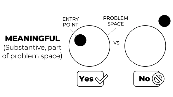 While a perfect entry point might always be elusive, in most cases, collaborators can find a suitable one. Ask: Is the entry point meaningful in light of the larger issue? Is it actionable given the time horizon and capacity of the team? Is it acceptable to the main stakeholders? And is it provisional, in the sense that it enables the team to learn more about the problem and identify next steps? Remember, entry points don’t replace or diminish the broader issue area that a team hopes to ultimately address; they are a starting point for analysis and action.