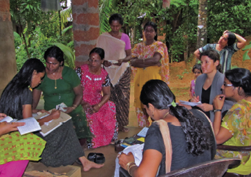 Jamie Dunchick (far right), a J.P. Morgan employee, observes a borrower meeting in India. (Photo courtesy of the Grameen Foundation)