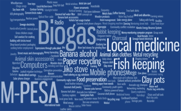 When asked to talk about innovations that impressed them, study participants mentioned a wide range of products, systems, and ideas, ranging from cutting-edge technological solutions to indigenous-knowledge-based innovations. For example, respondents in Nairobi talked about BMW concept cars while respondents from rural Nyeri talked about jiko stoves that eliminated the adverse side effects of open-fire cooking. (The word cloud below illustrates the diversity we encountered.)