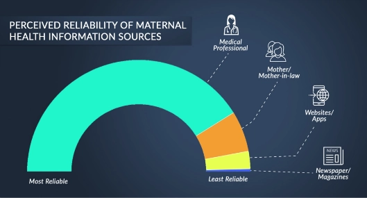 - There is a lack of trust in health-related digital information. For information on pregnancy and child health, for example, families traditionally seek out and trust doctors’ advice, as well as advice from their mothers. Low-income, underserved communities who have not been exposed to authentic digital content often have extreme distrust in digital information pertaining to health. Much of this distrust traces back to the absence of health information and services standards, both online and offline. In our research, only 12 percent of families thought information from digital sources was reliable, compared to more than 90 percent finding information from doctors and mothers to be most, very, or somewhat reliable.