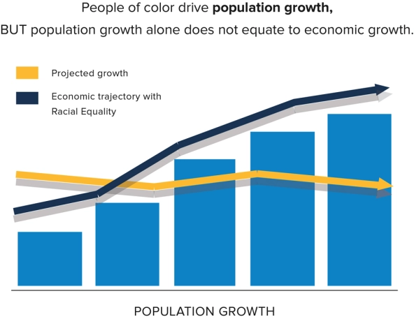 People of color drive population growth, but population growth alone does not equate to economic growth. (Image from Kellogg Foundation’s “Business Case for Racial Equity”)