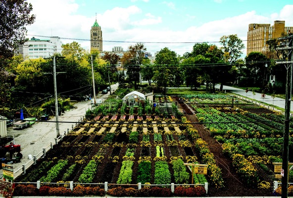 An estimated 1,400 urban gardens have sprouted up throughout Detroit, created by individuals and groups that want to put the thousands of acres of vacated and often blighted land to more productive use—growing fresh food, generating income, and creating community. As the number and size of these gardens (in some cases small farms) grows, and as Detroit’s economy recovers, disagreements over them are beginning to erupt. Some critics argue that the land could be better used for other commercial purposes that would provide more and better jobs for the approximately 25 percent of Detroit’s labor force that remains unemployed. Others think the land should be used for new housing, particularly in parts of the city that are near mass transit and are experiencing an economic upturn, like the area pictured here. The Michigan Urban Farming Initiative garden lies near Wayne State University and only a few blocks from a station on a new light rail system that connects to downtown Detroit. Whatever one’s position on urban farming, the fact that Detroiters are now arguing over the best use of formerly abandoned land is a hopeful sign. (For more on Detroit’s recovery see the sponsored supplement, “Drawing on Detroit,” elsewhere in this issue.)