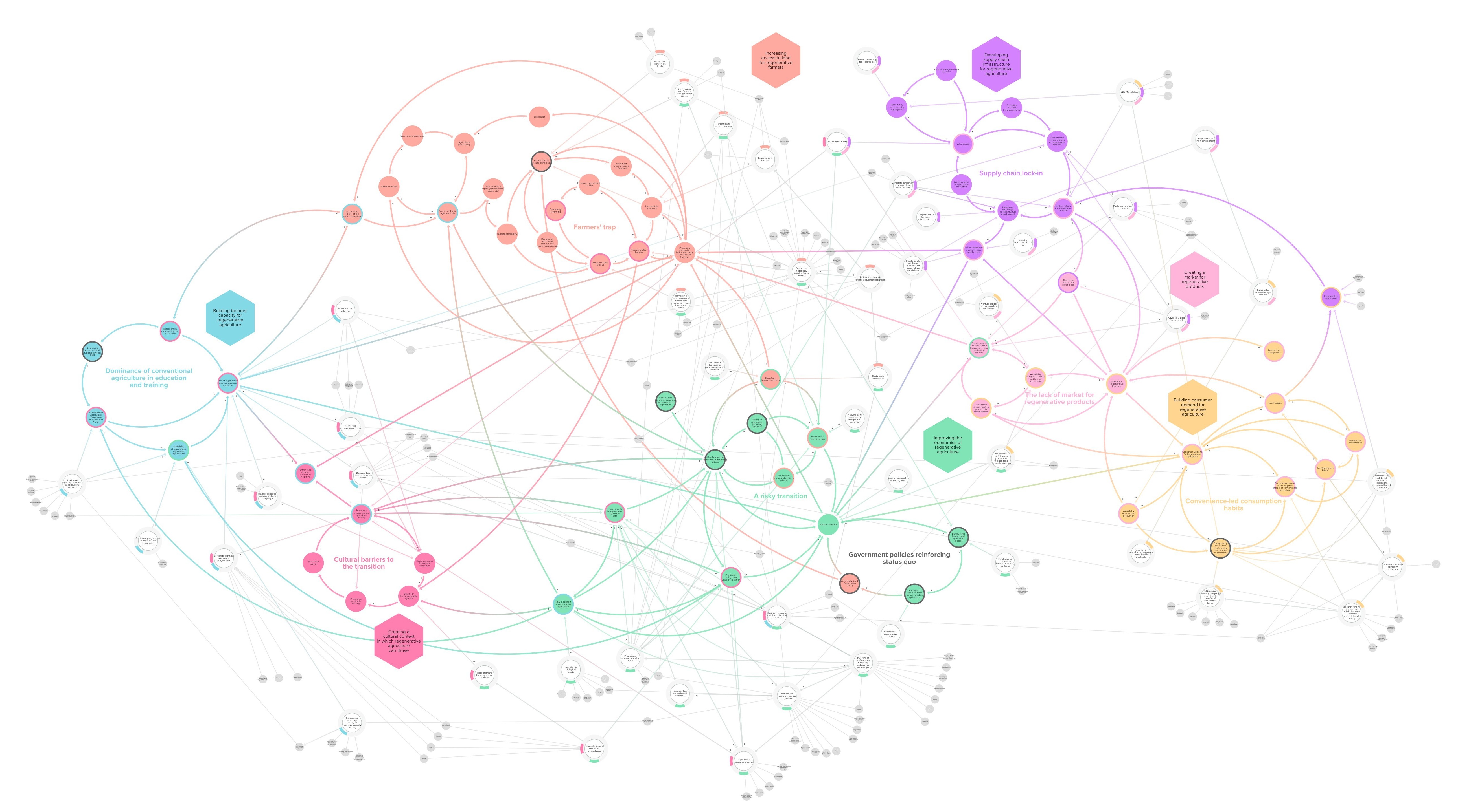 Figure 2: Transition map for regenerative agriculture in the Midwest (original Kumu map here).