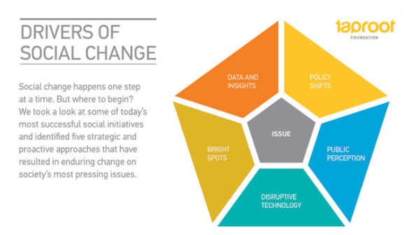 The “five levers for social change” I’ve laid out in this series can help shape the path for any individual, organization, or government to create change. It clearly lays out the only five strategies that we at Taproot know work.