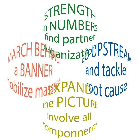 The National Audubon Society began with the mission of protecting birds and their habitats in the United States and worked largely on wildlife conservation policy, but over time, it became clear that protecting habitats in the United States also meant addressing the broader issue of global climate change. An organization using the “go upstream” approach serves its mission in part by pursuing the root causes of the issues it wants to solve. For the National Audubon Society, going upstream entailed developing a general focus on environmental protection, with the downstream goal of saving birds’ habitats.
