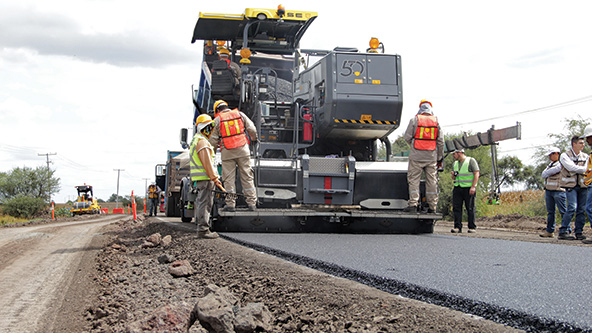 Road workers lay the world’s first federal highway made with modified asphalt, in the municipalities of Irapuato and Cuerámaro in the state of Guanajuato, Mexico. (Photo courtesy of Dow Mexico)