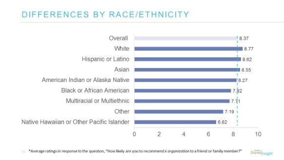 In disaggregate the picture was more complex, with different ethnicities rating their experience more highly at different organizations.
