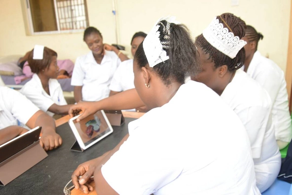 Okuzu, who is also the founder of Instrat Global Health Solutions (Instrat GHS), the social enterprise behind CliniPAK, also supports in-person training. When his team was designing CliniPAK, they knew it might be easier for the average person to learn how to use a tablet-based app than rather than a computer program, given that smartphones were nearly ubiquitous. But they still conducted regular, in-person training sessions in small groups and encouraged students to teach other as a way of reinforcing what they just learned.