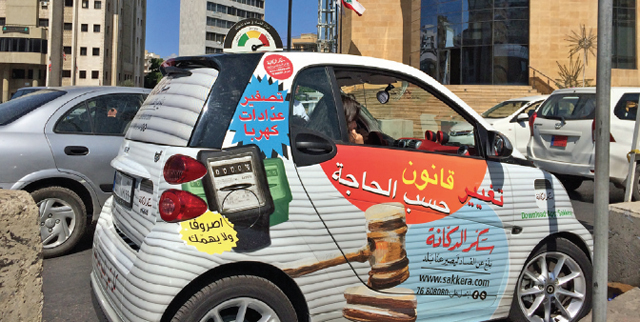 A car in the Lebanese municipality of Jdeideh promotes an anti-corruption campaign. (Photo courtesy of Sakker El Dekkene)