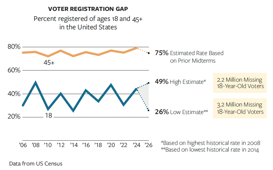 It’s a problem for many reasons. Among them is the challenge that when young people are not registered, they are not in the voter file. That means many candidates and campaigns—especially those at the state and local levels with real budget constraints—do not have the resources to reach them, hear their concerns, and present plans to address them. That disconnect breeds cynicism and a vicious cycle because young people feel, correctly, that politicians are not speaking to them or confronting the issues most important to them.