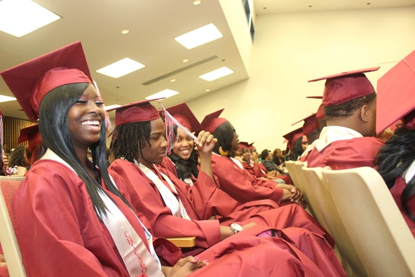 Students at Chicago Talent Development Charter High School prepare to walk across the graduation stage. (Photo courtesy of Diplomas Now)