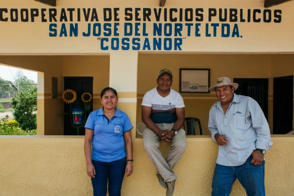 Celia, Ariel, and Rimber are members of a local water cooperative in the town of San Jose del Norte in San Pedro. Their cooperative’s work contributes to the sustainability of water services, which will eventually allow Water For People to exit. (Photo courtesy of Water For People)