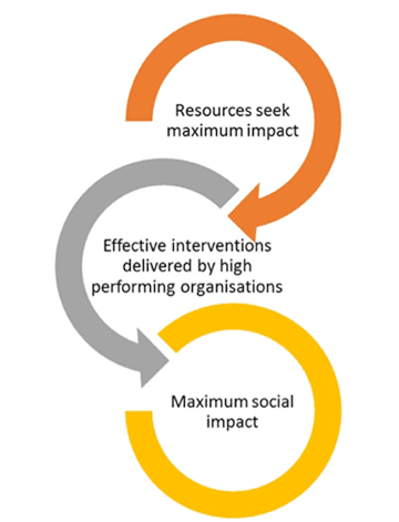 Even if organizations have common outcomes frameworks, it’s often a challenge to get hold of the outcomes data they need. For example, nonprofits working with ex-offenders need to know if they go on to offend in the future. That data is hard to collect—should they stay in contact with each participant? Should they build relationships with government—local and national—to keep track?