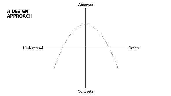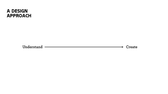 A design approach emphasizes discovering the right problem to solve, and investing in both problem-finding and problem-solving. For both human- and systems-level challenges, we need to identify the problems worth addressing if we are to create meaningful change. Understanding the right problem, we can better create effective solutions. A very simple characterization of a design approach is that we move from working to understand a challenge, to working on creating solutions in response to the challenge.