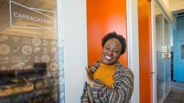 Helen Adeosun is the co-founder and CEO of CareAcademy, which receives funding from Lumina Impact Ventures and produces mobile-based instructional material for home-health aides. (Photo by Shawn Spence Photography)