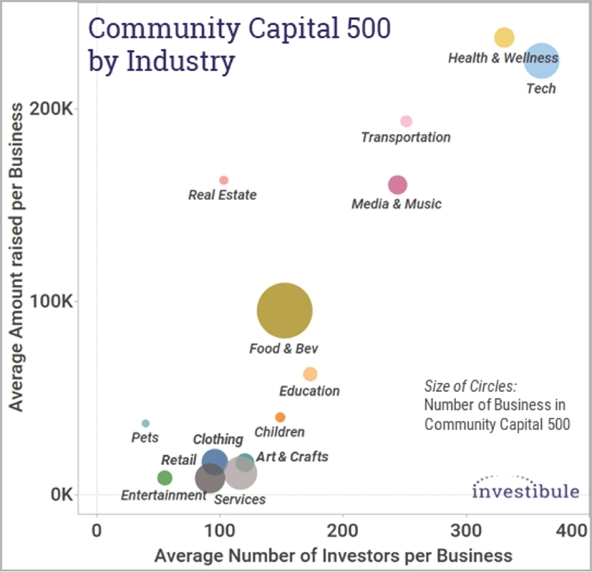 The CC500 is comprised of a vibrant mix of businesses. While tech reigns in the venture capital world, it is a distant second to food and beverage ventures, in terms of volume, among those we analyzed. Retail, health and wellness, clothing, entertainment, transportation, media and music, education, and service-oriented businesses are all part of the mix.