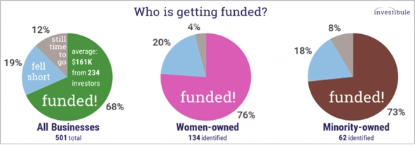 The investibule data adds to the growing body of evidence that crowdfunding is fulfilling its promise of getting capital to a wide range of deserving entrepreneurs, no matter their zip code or skin color, or where they went to school.