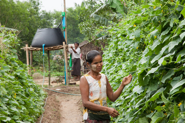 Customers in the Ayeyarwady Delta region of Myanmar use the Proximity Designs drip irrigation system. (Photograph courtesy of Proximity Designs)