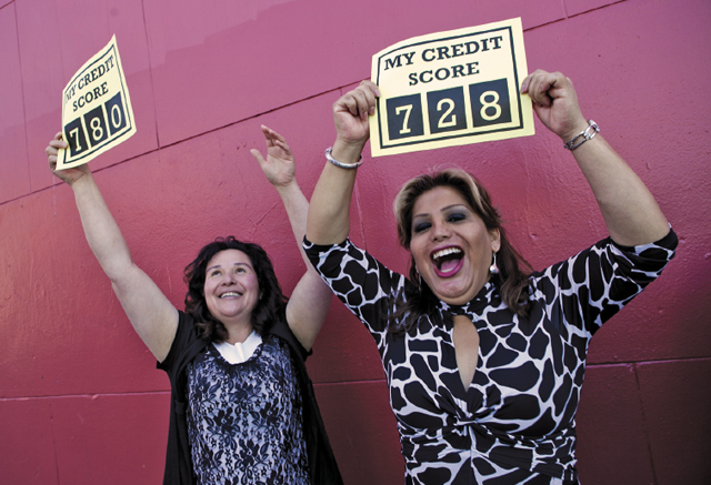Two members of a lending circle at Mission Asset Fund, a Citi Foundation grantee, celebrate raising their credit scores. (Photo by Sarah Peet, courtesy of Mission Asset Fund)