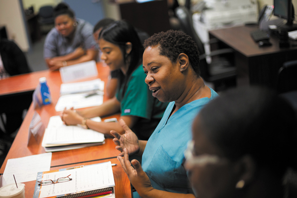 West Philadelphia Skills Initiative trainees prepare for jobs at local medical institutions. (Photo by Ryan Collerd)
