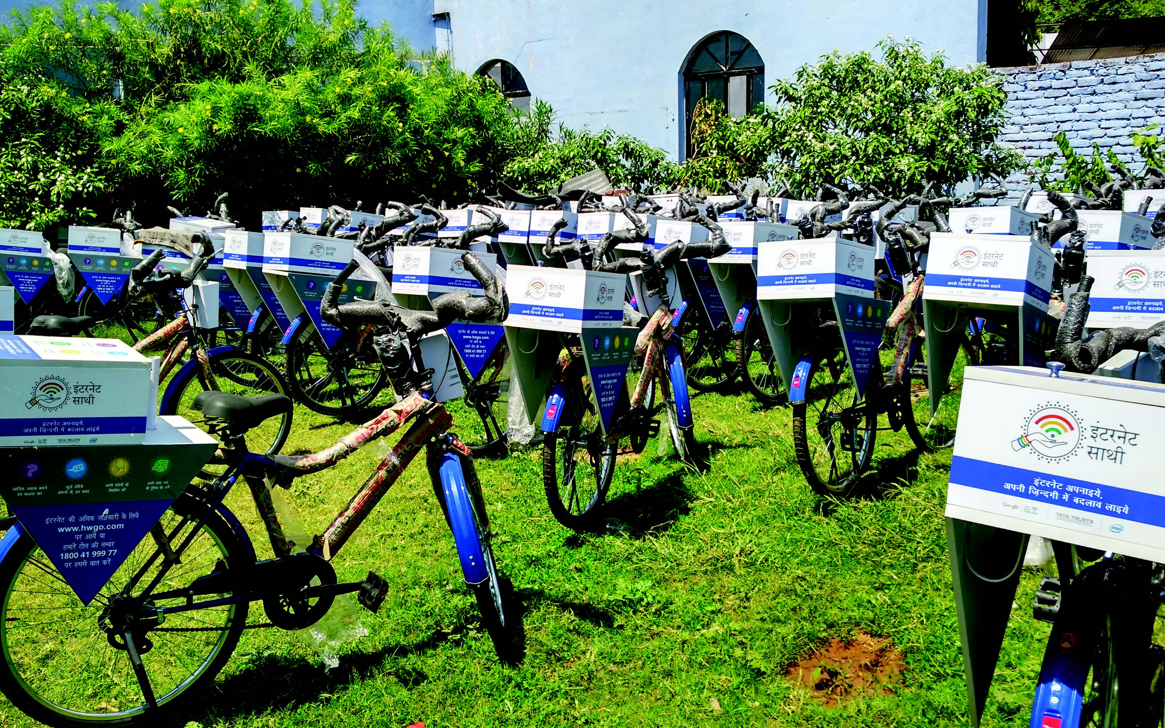 Many developing-world countries have made significant progress toward providing their people with Internet access. In China, 65 percent of adults have Internet access, and in Brazil it’s 60 percent. But in India, according to the Pew Research Center, only 22 percent of adults have access to the Internet. There are several reasons for this. One is that many rural areas simply don’t have wired or wireless Internet coverage. Another is that many poor people can’t afford to buy a computer, tablet, or smartphone, or purchase Internet access where it’s available. And a third reason is that about one quarter of Indians are illiterate, and so they have a difficult time even navigating the Web. Google and Tata Trusts have set out to solve these problems. Their solution is to train women as Internet guides and send them out to rural villages on special bicycles outfitted as mobile Internet kiosks (such as the ones shown in the photograph above). When a Saathi (Hindi for “friend”) arrives in a village, she teaches other women how to use a smartphone and tablet, and also goes online to find answers to any immediate questions that local women might have, such as when to immunize their child or how to obtain a loan for school. As of last summer, Saathis had visited 18,500 villages in nine Indian states and reached more than 300,000 women. The goal is to visit 105,000 villages by the end of March 2017.