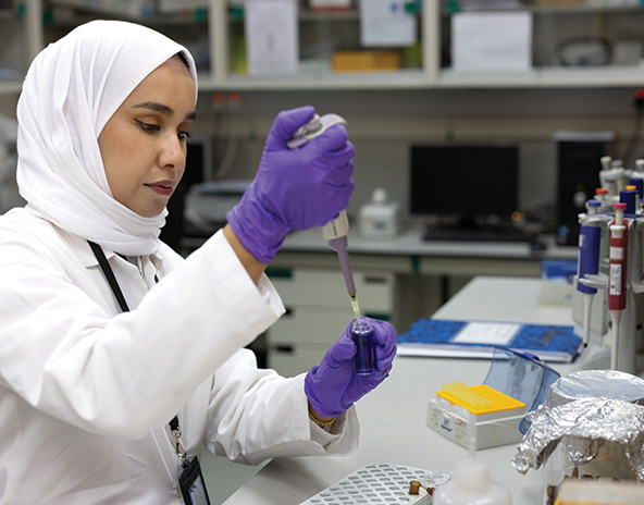 Dr. Sherain al-Subiai works in a lab at the Kuwait Institute for Scientific Research. (Photo courtesy of the Kuwait Foundation for the Advancement of Sciences)