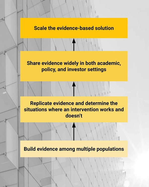 Comparable evidence is not available for every type of investment, especially for new and innovative products or enterprises. It is rare, for instance, to have studies of two different programs that use comparable units of measurement, let alone similar study designs. When high-quality evidence about the social impact of an investment is lacking, investors can use their capital to support the creation of needed evidence by making repeated or long-term investments. Commitment to evidence-building through the investment of both capital and time requires that investors embrace an intentional approach and a patient strategy. We call this practice vertical layering, because it builds the evidence like rungs in a ladder, effectively elevating one solution above all others.